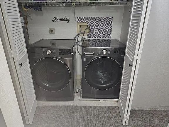 Unit with a view at Mirasol in Rancho San Diego. This upstairs 2br/2ba unit has amazing VIEWS!! Relax and look at the mountains right out your patio door. Private - No units look into yours! Recently painted, new carpet and vinyl flooring installed. Central heating and air conditioning. In-unit laundry hookups. City close but it has a serene country feel. The unit includes 2 designated carport parking spaces, with ample guest parking available. Community features two pools and spas. A BBQ area, and even an electric vehicle (EV) charging station.