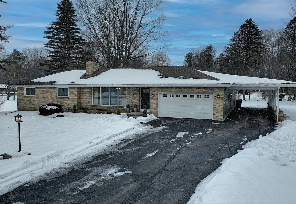 Looking for a 4-bedroom, 2.5-bath home in Alden? 11522 Cary Rd. is ready for you! The primary bedroom suite features hardwood floors, a renovated bathroom with a tile shower, tile floors, and a modern vanity. Natural light flows in through the sliding glass door that leads to the backyard, where you’ll enjoy a cozy fire pit perfect for outdoor gatherings. The kitchen boasts a blue farmhouse design with white subway tiles, a modern gas cooktop, a stylish range hood, a coffee station with butcher block counters, open shelves, and a large pantry. An updated half-bath off the kitchen includes beautiful white wainscoting. Entertain with ease in the dining room that opens to the living room, where you can relax by the stone fireplace next to a large picture window. The other three bedrooms all feature 6-panel doors, fresh paint, and hardwood floors underneath the carpets. The full bathroom has been updated with a new vanity and tile floors. A full basement offers plenty of storage space. This home also boasts new modern lighting throughout, vinyl windows, fresh landscaping, and exterior lights that highlight the curb appeal, day or night. A 2-car attached garage, a bonus carport, and a large shed—equivalent in size to a garage—complete the property. Don't miss out on this charming home! SQFT Based on Floor plans. Showings begin immediately, and offers will be reviewed starting Tuesday, February 11th.
