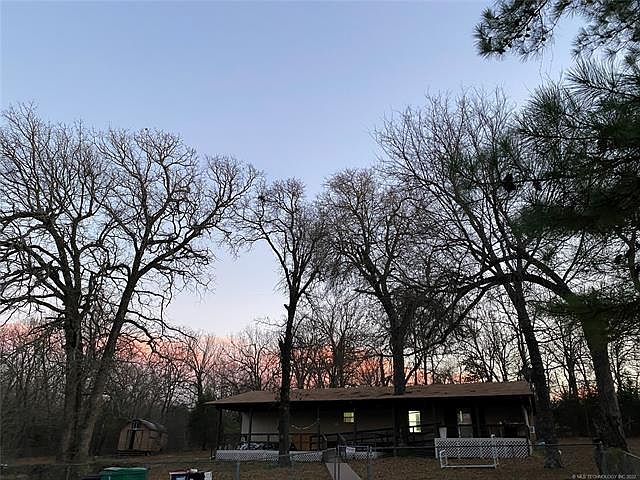 9.5 acres, wooded lot, if you want some privacy come enjoy the seclusive country living yet close to all convenience, short distance to Eufaula Lake, 3bedrooms w/3 baths, newer floors & appliances, fenced yard, 2 storage bldgs & nice shop about 1800 sqft has window ac & attached to the carport. Large covered deck w/view of pond, imagine listening to the birds singing while in your rocking chair enjoying the sunrise/sunset & the wildlife in your own property. Don't forget go fishing in your own fish pond!