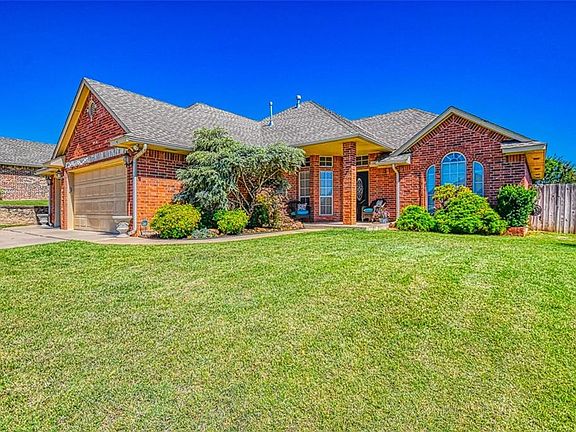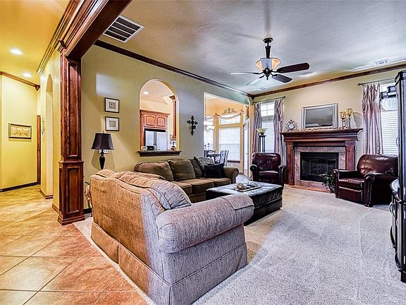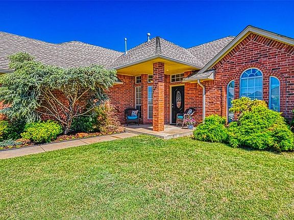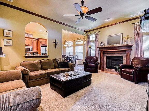 This 3 bed, 2 bath home with a private office has a fantastic layout. The inviting kitchen features granite counter tops, a good amount of counter space and cabinetry, an open bar area into the dining room which has a beautiful tray ceiling. The wood finish on cabinetry is a custom stain and is gorgeous. Tile flooring is throughout all high traffic areas with an open living/dining/kitchen concept. Large pantry off the laundry area, perfectly located. The large master retreat with a beautiful tray ceiling has room for a seating area and more and adjoins the en suite bathroom with double sinks, make up vanity area, large jetted tub, and separate shower. Secondary bedrooms are on the opposite side of the home and are well sized, one having a walk-in closet. The homes back covered porch area is a sweet retreat and a welcome oasis from the hustle of the city. The addition has a beautiful walking trail, with catch and release fishing ponds, play park and picnic area.