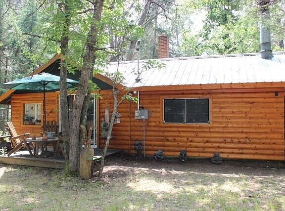 Plucked right out of fairytale and tucked away on almost 8 acres with 260' of private frontage on the South Branch AuSable | The coziest log sided cottage with 2 bedrooms, a 3/4 bath, rustically modern knotty pine, and a sliding door opening onto a rear deck keeping it feeling bright and spacious inside. A split stone wood burning fireplace brings the ambiance and cranks out the heat while a LP space heater is used for primary heat. A cyclone fenced yard, 11 year old metal roof, detached garage, and outdoor bar ready for service! You really have to see it to appreciate how picture perfect this place really is!