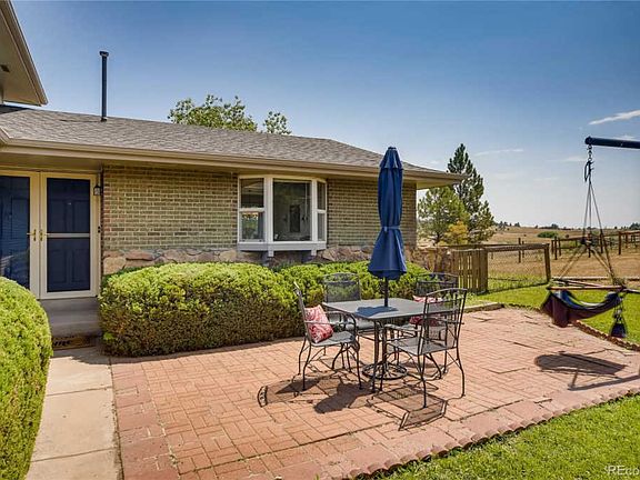 This fantastic horse property in Parker is the best of both worlds - a gorgeous and private retreat from hectic city life located conviently close to the amenities of the city. With the beautifully maintained 3 bed/3 bath home comfortably situated on 5 acres of land, privacy is all but guaranteed. From the elegant fireplace and graceful archways to the stylish finishes, beautiful details abound in this home. Walk in to a bright and welcoming living room, have engaging dinners in this classic dining room, and enjoy breakfast in this modern farmhouse kitchen complete with granite counter tops, a double oven, and extra storage space. Working from home won't feel like work with the gorgeous view from this office space, while the bonus room in the basement offers the perfect escape from the day, with an additional 3/4 bathroom on the lower level as well for convenience. Upstairs, the tranquility of country life is apparent in the peaceful master suite (complete with a full master bathroom), as well as in the two additional bedrooms and 3/4 bathroom. With gorgeous Colorado views on each side, the interior of this home is bright and enjoyable year round - and if that Colorado sunshine heats things up, the new A/C unit will definitely cool you off! If you would rather appreciate spectacular sunsets outdoors, you can make use of the well-maintained brick patio or relax in the hot tub. Outside of the main house, the 24x36 barn - along with several fenced and gated ares for horses, hay storage, fenced pastures, and a shop -- allow for true country living at it's best. Whether you are looking to escape the hectic pace of the city, or you simply appreciate the privacy and freedom of having a truly beautiful space of your own - this exceptional property is a MUST SEE!