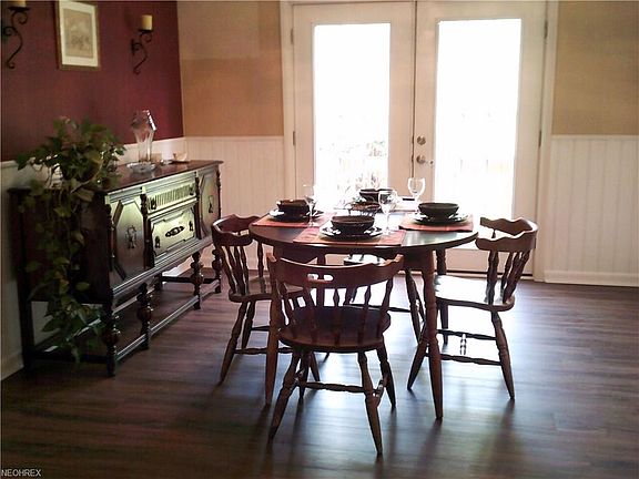 Simply charming Country Style home. Enjoy living in this this storybook picturesque secluded setting while still living in the heart of Chardon. This home is surrounded by nature at it's finest. Featuring abundant towering pines and lush foliage that offer a wonderful serene setting. Walk through the formal dining room with french doors that lead to an awesome 43 x 25 ft deck, great for entertaining and relaxation as you look over a wooded fairy tale setting. Step back in time as the rear yard has an old time tire swing and a fire pit. The septic system is only 4 1/2 years old and has been maintained with a newer aerator. Partially finished walk-out basement with a new man door, also has a laundry room and bar area with stools. Separate 30 x 20 barn and home offer newer driveways. The main floor has some handicapped accessible features including a bathroom with a large walk-in shower. Newer floors in dining room and hall plus hardwood floors thru-out. The living room has beautiful beamed wood ceiling and an all brick raised hearth wood burning fireplace complete with a timber box container.......this home looks like it has walked off the pages of Better Homes and Gardens....just turn the key and move in!