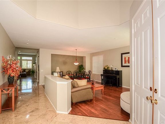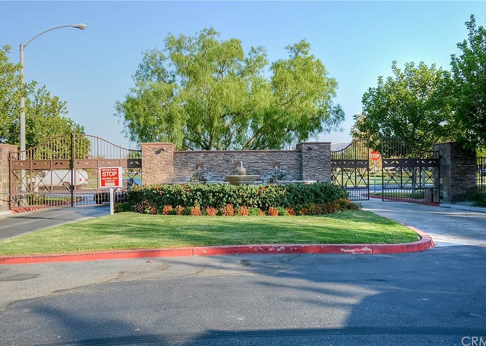 Gorgeous Single Level Home in the lush master planned Montecito Estates gated community of Riverwalk. 4 bedrooms, 3 baths, 3 car garage. Luscious natural stone floors , laminate wood floors and neutral colors throughout. Huge Kitchen with newer stainless steel appliances, granite counter tops opened to family and breakfast room. Separate office niche and bar. Formal living and dining room area, double door front turret entry. Spacious master suite with retreat. Master bath with large walk-in closet, dual sinks, vanity, shower and relaxing tub. Secondary bedrooms feature walk-in style closets. Inside laundry room with sink. Fully landscaped yard with mature fruit trees, shaded patio and grass area. Community has lush greenbelt, walking and biking trails. Close to freeways, La Sierra University, Kaiser Hospital, shopping centers and schools. The location of this house, its curb appeal, condition and top schools make it the ideal place to call home.
