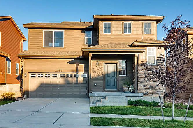 New built home in D-20 under $250K. Two story with full finished basement & incredible mountain views. Generous kitchen with island, 9ft plus ceilings, 5 piece master bath, upper level laundry, generous 2 car attached garage, and much more. Customized this home to meet your personal needs! Full landscaping and sprinkler system included. Great community with easy access to I-15.Minutes from Air Force Academy, D-20 schools, shopping, parks and hospital. Easy maintenance living in community with 80,000 sq ft of green space and a playground.