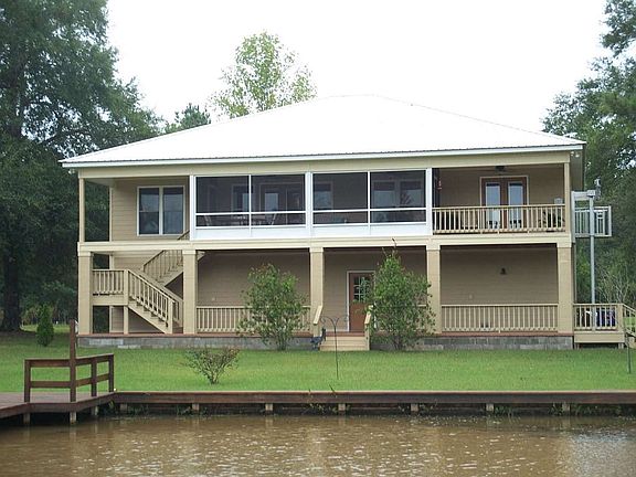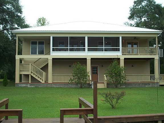 House built in 2015 by Contractor Tony Nall. Built to all the latest flood standards. Beautiful view of the lake & great sunsets from the upstairs screened porch/deck. Lighted tray ceiling in great rm. w/ gas FP. Porcelain tile flooring throughtout. Granite & stainless in kitchen. Electronic office/study. Recessed LED lighting. Room for freezer in large laundry rm. Wheelchair width doors. Fire resistant cement siding & metal roof. Underground utilities. Electronic lift for people & groceries. Huge master w/ oversized walk-in closet. Large storage & garage on the 1st floor. On paved road.