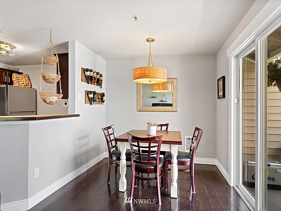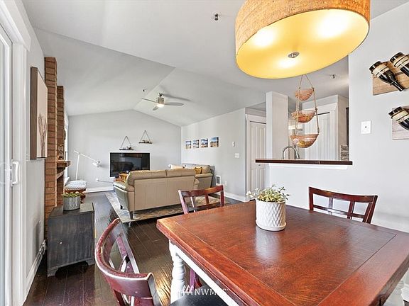 Beautifully updated top floor end unit condo. Welcome to Carlisle Creek, this gated condo community is waiting for you. Close to Boeing, tons of restaurants, parks and more. This two bedroom, two bathroom unit has many upgrades. Laminate flooring throughout, paint, appliances, backsplash just to name a few. The vaulted ceilings really open up the living room. Rustic wood burning fireplace adds tons of charm. Open kitchen with eating area and dining. Large master bedroom features an ensuite bath. Enjoy the summer on the patio that features extra storage. You will also enjoy the Pool, hot tub, gym, pool room and tanning bed. Water, Sewer and garbage are covered in your hoa dues. You don't want to miss out on this one.