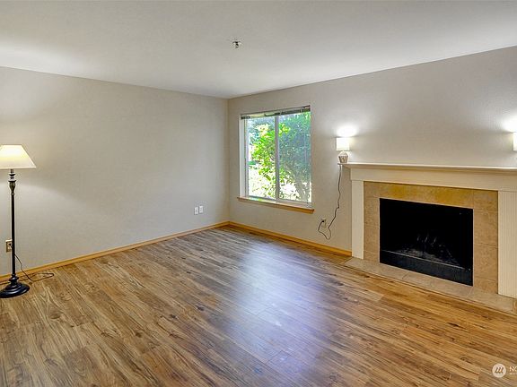 Welcome to Carlisle Creek Condominiums! This lovely two bed, two bath is a one of one main floor unit featuring brand new flooring, paint, and water heater. The spacious floor plan provides open movement between the kitchen, dining room and living room with fireplace. The master bedroom offers a private bathroom with an accessible sit down shower and the living room connects to to your own outdoor patio, storage space, and a grass yard area enclosed by a treeline. The unit includes two parking spaces (one covered). Close to Boeing/freeways/transit. Come see!The Carlisle Creek is a gated community and provides a clubhouse and game room, playground, pool, hot tub and exercise room. HOAs include water, sewer and garbage.
