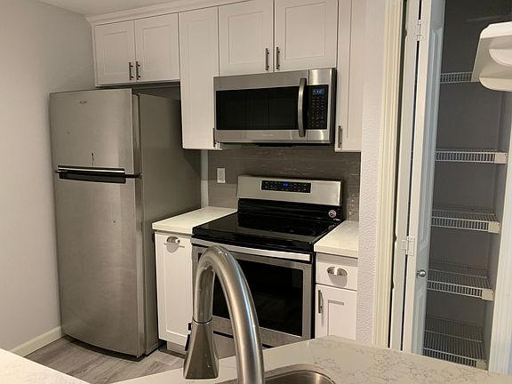 All but brand new condo in South Everett in gated community. Open floor plan. New paint throughout. New vinyl plank flooring throughout EXCEPT porcelain tile in entry, laundry closet, and bathroom. New white, shaker, soft-close cabinets. Quartz counters and subway tile backsplash. Stainless steel appliances including refrigerator, glass-top range, dishwasher, microwave and garbage disposal. Master bedroom with French doors, ceiling fan, and walk-in closet. Second bedroom with large closet. Quartz counter and subway tile in bath. Wood-burning fireplace. Washer and dryer in unit. Well-appointed clubhouse with pool, hot tub, BBQ, game room, and gym. Close to Boeing and future light rail station. Available NOW. $1,495/month rent. $1,500 damage deposit. First month's rent and damage deposit to move in. Small, well-behaved pets allowed with pet deposit and maximum of two. Credit score of at least 650 required for all adults. No smoking. $35 per adult application fee. . Tenant pays electricity. No smoking. Minimum 650 credit score required. $35 Application Fee per Adult. Only established pets allowed.