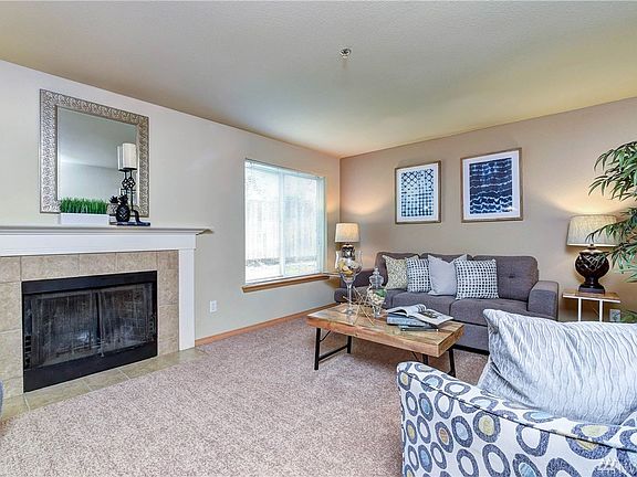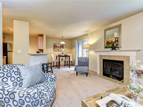 Grab this opportunity located in beautiful well managed gated community. Staged. New Carpet. End unit has a nice patio for BBQs easy to walk the dogs. Large living rm w/frpl & D/R w/slider. Kitchen is open to living area, nice SS appliances! Master bdrm full bath & wall of closets! 2nd bdrm has a walk-in closet. Full-size WD in unit. Tanning bed/clubhouse/outdoor pool /Hot Tub/game&TV rooms &more! 2 pking spaces next to condo one covered. Mukilteo Schools! EZ Boeing access & I-5! No rental cap