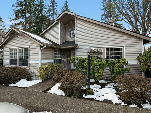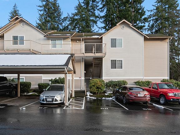 Pristine clean top floor penthouse end unit with vaulted ceilings and an attached back deck. Inviting living room with brick hearth fireplace. Breakfast bar with dining room. Master suite with attached bath and full length extra large closet space. Nice ceiling fan that enhances the open feeling. You will appreciate the added privacy of the condo positioning. Modern well maintained community with security gated entry. Club house with cabana, fitness center, outdoor pool, hot tub and game room. Covered assigned parking in addition to an assigned outside parking space. Close to Boeing, shopping, restaurants, parks and convenient access to I-5 and 405. A gated secure community with all the perks. All stainless steel appliances stay. Very nice!