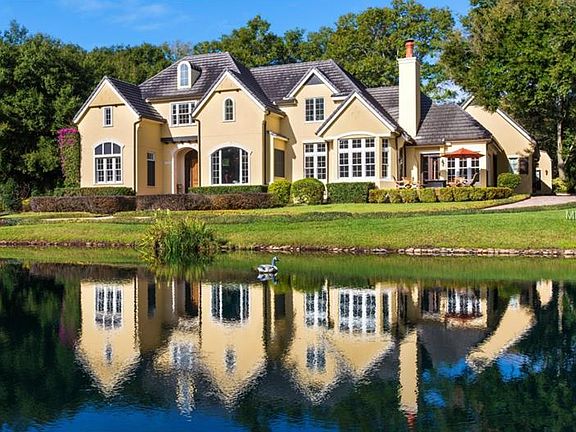 Experience the joy of living in one of the finest locations Windermere has to offer, amongst gorgeous lake views & impeccably manicured grounds! This 5 bedroom, 5 & ½ bath estate home built in 2005, boasts 5672 sq ft & over 1 acre of land with no HOA. A reflecting pond in front of the home creates incredible curb appeal; a stunning front elevation makes for an inviting, "welcome home" feel. Step inside to an open floorplan with 20' ceilings, Brazilian cherry hardwood floors, & amazing views from nearly every room in the house. The gourmet kitchen is complete with Granite countertops, industrial gas stovetop, farmhouse sink, and an oversized walk-in hidden pantry built into the custom cabinetry. The adjacent family room with Gas Fireplace is expansive yet has a cozy feel, adorned in natural light from the oversized dual-pane windows. The downstairs master retreat includes a private study, oversized walk in closet, large master bath with dual sinks and jetted tub. French doors from the office lead out to a terrace for incredible views of Lake Butler. An oversized 3-car garage has plenty of storage & is fully air-conditioned. Upstairs includes a bedroom suite & two additional bedrooms with a shared bath. A separate staircase over the garage leads to an amazing game room & home theater- equipped with a full kitchen, granite island, & full bath perfect for movies, parties, or just hanging out. The private backyard oasis has landscaped trellises surrounding the pool area with fountains and a custom Gazebo.