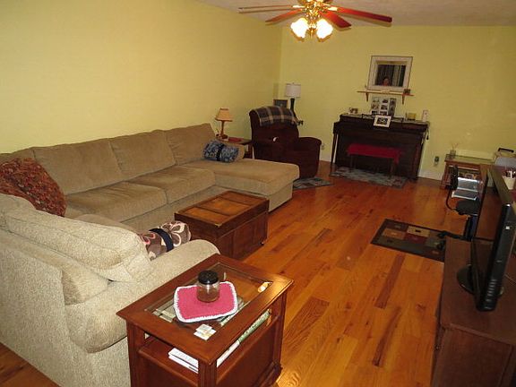 Wonderful mini farm with approx. 6 acres of fenced in pasture land with a barn. Currently home for the neighbors horses. The remainder of the property is mature trees. Enter the property on your own private paved drive and follow it to the top of the hill and enjoy wonderful mountain views. Home features three bedrooms and 2 full baths, hardwood and tile floors, custom Kitchen with corian counter tops. There is an additional sun room for just relaxing or additional room for family gatherings. Several outbuildings plus a 19 X 32 detached garage, wonderful space for a work shop. Owners have a fire pit great for the fall evenings.