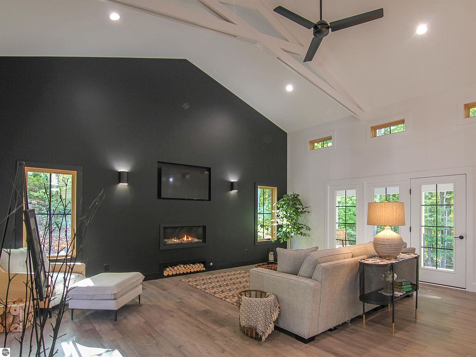 We invite you to experience the expert craftsmanship in this newly-built home. See it in the fine carpentry work all around you. Hear it in the precise closing of a finely crafted door. Feel it in the quality luxury vinyl plank flooring under your bare feet. Touch it as you release the Frigidaire cooktop with Cattura pop-up vent from inside the luxurious Mid Continent cabinetry. This 4-bedroom, 3.5-bathroom contemporary craftsman home, located near the 3rd tee of the Mountain Ridge golf course at Crystal Mountain, exudes fine craftsmanship. The kitchen also features Quartz countertops, GE Profile black stainless appliances, and a 6' x 6' walk-in pantry. The spacious master bedroom features his/her walk-in closets, a spa-inspired en suite bath with gorgeous soaking tub, backlit mirrors, and a roomy tile shower. Upstairs, the 503 square foot finished room above the garage offers two built in, extra-long twin beds, a full bath, and an ample clothes closet. The lower level walkout features 9' ceilings, two bedrooms, one full bath, children’s school/craft zone, bar area with wine chiller, and an expansive family room with adjacent game table area. Insulated garage doors open to reveal parking for two cars plus room for a golf cart. Extensive Trex decking in front and back, with glass deck rails off the back providing clear views of the brick paver fire pit area and golf course. You'll enjoy year-round comfort thanks to Bryant’s high efficiency gas furnace and air conditioner with humidifier. Whether you decide to make this your forever home or your resort-based second home, it will quickly become your favorite place to be. This is a rare opportunity to purchase new construction in MountainWoods ready for your immediate enjoyment. Furnishing and decor package available at $45,000. Crystal Mountain Four Seasons Club Membership options also available.