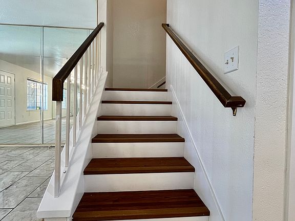 Hurry before it's gone. Owner put in lot of love and care in to property. New flooring in bedroom and stairs and fresh new paint throughout. Three bedrooms upstairs and downstairs has a large patio entry and a half bathroom. Garage is large for 2 cars and has washer and dryer hookup. Community is gated with pool. Closed to freeway and many shops. Tenant is responsible for all utilities.