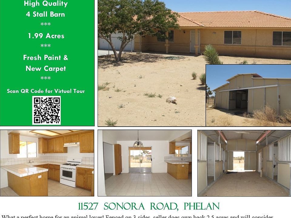 What a perfect home for an animal lover! Fenced on 3 sides, seller does own back 2.5 acres and will consider selling separately (cash offer). 4 stall quality FCP barn adds to the appeal - fruit trees and mature shade trees. Home has fresh paint and carpet. Slider in dining area with tile floors. Tile counters and floors in kitchen - Separate Family Room with brick heath Fireplace. Master with double doors entry - dual sinks and shower tub. Hall linen and more! Seller will replace A/C upon loan approval. This is a great set-up!