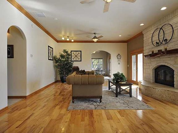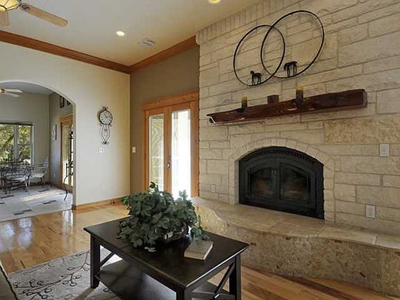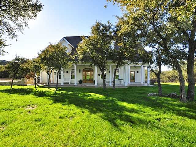 Hill country charm on 11.22 private acres w/ seasonal creek, just 5 miles from shopping. Originally a custom homebuilder's personal residence,upgrades include 10 ft ceilings, crown molding, hickory cabinets & flooring, stunning stone fireplace, granite counters, 2 large bonus/media rooms, laundry rooms on both levels. Kitchen updated 2012 w/stainless Viking appliances. Newly completed guest house. custom 4 stall barn, fenced & cross fenced.