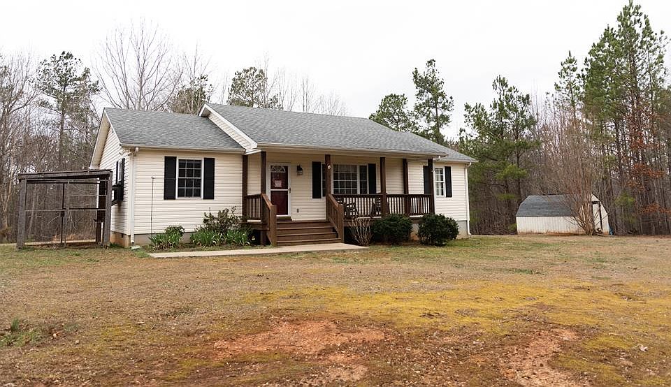 Tucked on a private almost 5 acre lot is this gem of a home. As you drive down the driveway the worries of the world will slip away. Enjoy a ranch home with open floorpan. Large living room will be a great place for family and friend to gather. Enjoy a kitchen with ample room for dining and cooking space. Tons of cabinet space and countertop work space. Large laundry room with storage space. Master bedroom has a wonderful bathroom suite. 2 bedrooms and additional bath. Home has a rear deck overlooking private yard. Owner has created an enclosed outdoor cat play area--that can stay or go for new. owner. Shed for storage. Nice flat yard for playing and easy lawn care. Home is only minutes to Town of Farmville with shopping, groceries, hospital, 2 universities , all. of your day-to-day necessities.