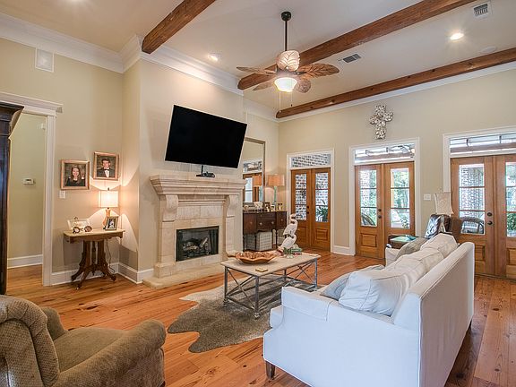 WOW! Guest Cottage AND a beautiful, custom-built French Country home for a new REDUCED price!! Located on a quiet street on the Island in Bayou View School District! Property boasts a 3229 sq ft 3 bdrm/3-1/2 bath main house with 2 double garages and a 968 sq ft, 1 bdrm/1 bath mother-in-law cottage with a its own double garage. From the second you walk in you will feel at home in the spacious, but cozy living room adorned with high ceilings, heart pine floors, gas fireplace, exposed wood beams, brick accent wall and French doors that open onto a beautifully landscaped patio and backyard.