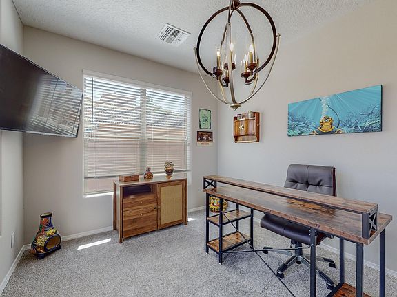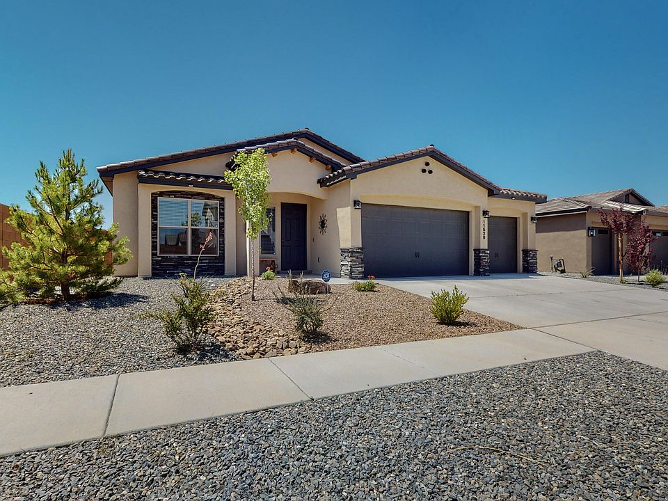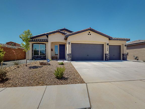 This beautiful 3 bedroom, 2 bath home is located in the desirable neighborhood of Volterra. Just two years young and nestled into a quiet and private corner lot, this house will have everything you are looking for in a new home without having to wait for construction! As you walk in through the 8 foot front door, you'll be greeted by soaring ceilings, stunning tile floors, and a chefs dream kitchen. The open floor plan leads seamlessly into the fully landscaped backyard where you will find high walls for ample privacy, a large covered patio, and a putting green! This is the perfect home for all your family gatherings! Easy access to Kirkland Air Force Base, I-40, and shopping! This gorgeous house is move-in ready and is waiting for you to call it home!