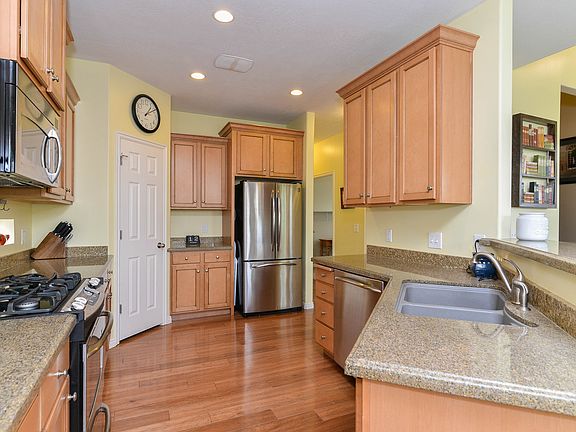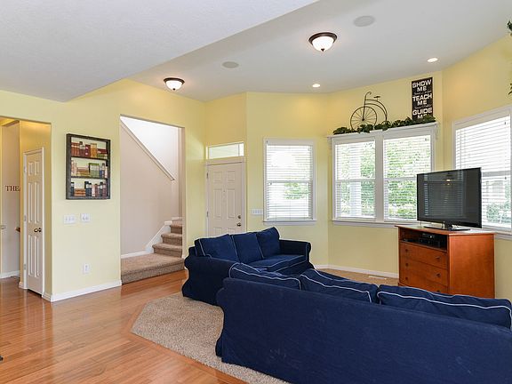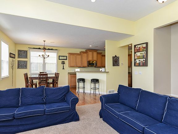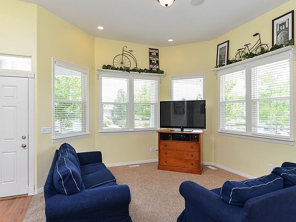 Charming Daybreak corner lot features open floor plan & ample daylight. Kitchen boasts upgraded GE profile appliances, granite, bar seating, staggered cabinets. Sizable Master features en suite bath w double vanity & walk in closet. Large bedrooms w double closets, extra storage. Basement w theater room and kitchenette. Zero maintenance landscaping.
