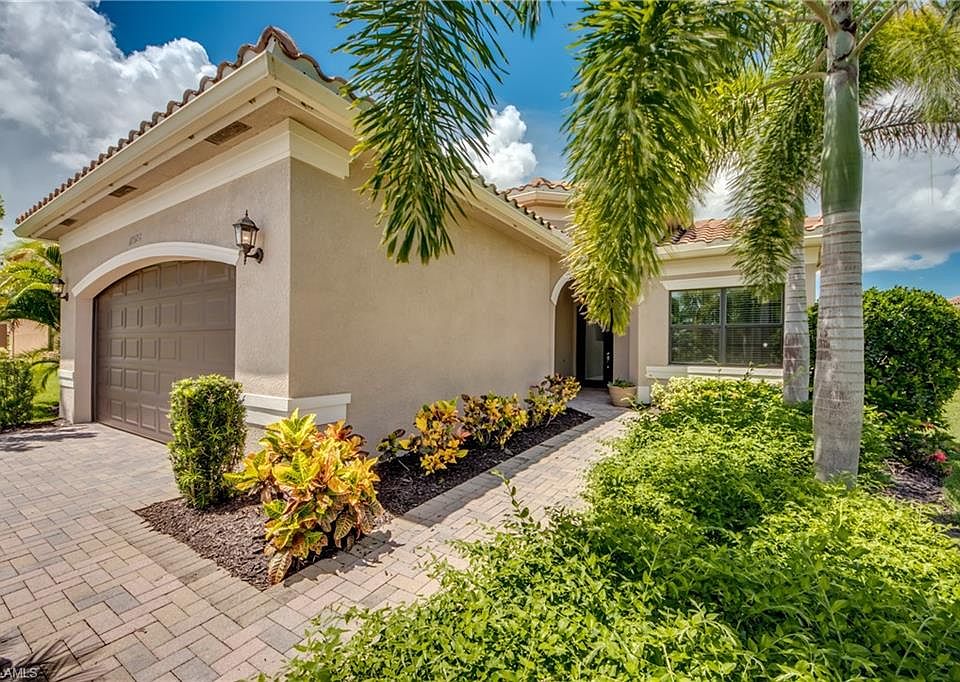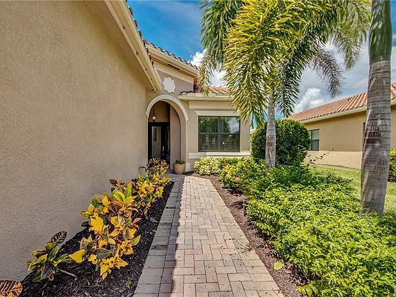 Waterfront move in ready Cayman model home from one of the top builders in SWFL on an oversized corner lot lined with lush mature landscape. Catch gorgeous Florida sunsets from your oversized back screened lanai. This waterfront home has a fenced in back yard and gorgeous light colored granite with glass back splash paired tastefully with white soft close cabinetry and stainless steel appliances. The garage has large built in wood cabinetry perfect for extra storage. Tile through out the home and wet areas with soft plush carpet in the bedrooms! Master bedroom features tray ceilings, walk in closets and a gorgeous master bathroom with soaking tub and walk in shower. Marina Bay is located in the Treeline corridor with quick access and a short drive to I-75, FGCU, Florida Jet-Blue sports park (the Boston Red Sox training facility) and the Fort Myers airport. Marina bay has amazing amenities such as resort style pool, lap pool, kiddie water and play park, state of the art gym, indoor basketball and plenty of tennis and pickle ball courts for the avid players!! Even a splash pad ( water play area for the kiddos ) and fenced in playground! Call and schedule your showing today!!