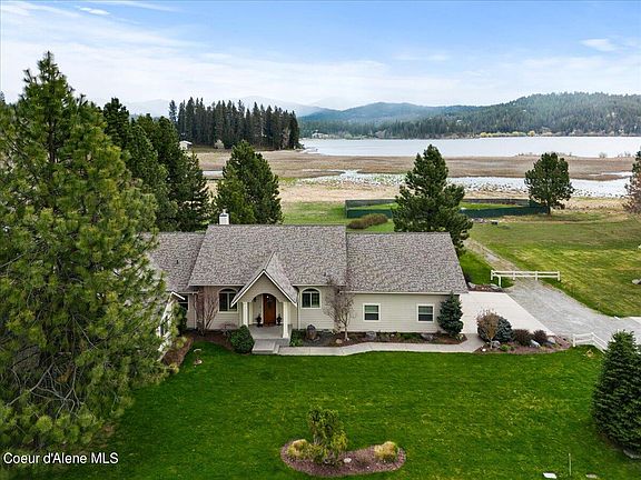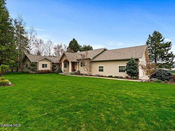 Discover your dream home near Hauser lake! This beautiful home provides comfort and style with stunning lake and mountain views, custom cabinetry with granite countertops and abundant storage throughout. 3 spacious bedrooms and 3.5 baths including a luxurious master suite with a cozy fireplace. The open living space features a gourmet kitchen with walk-in pantry, 6 burner stove top, breakfast bar, and large island complete with warming drawer and beverage cooler. The living room features a fireplace for cozy evenings at home while the separate mother-in-law suite offers privacy and comfort for guests and family. Get some work done in the grand office or step outside to a spacious back deck for relaxation while listening to the whole house audio. Home has a large 3 car garage for autos and toys. Less than a mile to the public boat launch, park and easy access to Spokane and Coeur d'Alene. Home offers a peaceful lake view retreat and close proximity to city amenities.