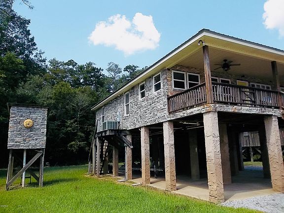 Outdoorsman dream on the river in Poticaw. Beautifully built custom home with bulk head, pier, and covered boat lift with two stalls. Covered parking under the house on the slab with a locking storage. The cedar used for the walls came from the property this is truly a one of a kind home with spilt brick floors, custom cabinets, and a custom mantel over the fireplace that has to be seen to appreciate.