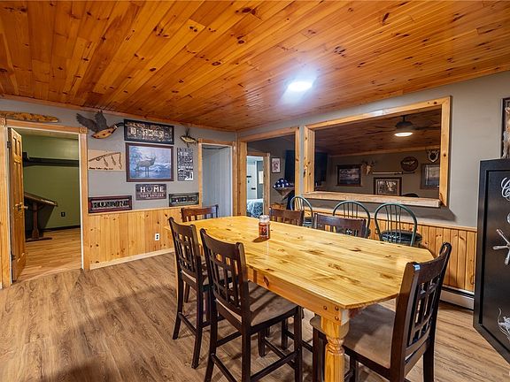 WELCOME HOME to this exceptional three-bedroom ranch with an enticing outdoor kitchen! This house offers the perfect blend of comfort, convenience, and outdoor living. Walk into an open layout of dining, kitchen, and living space. Inside you'll find three Heat pump/A.C. units and outdoors there is a backup generator (20KW), hardtop awning on the back deck, and a fenced in area for privacy of the outdoor kitchen/pool! Love to entertain? Enjoy this finished basement complete with bar area and half bath! Bring on the sunshine and engage with an outdoor kitchen that offers on demand hot water, stainless-steel sink/countertop, tiki bar, and sparkling pool with composite decking wrapped around that gives ample space for lounging. GARAGE SPACE!! Boasting over 2500 sq. ft. of garage area with 3 electric overhead doors, 6" concrete floors throughout, 80,000 BTU forced air furnace, and an open space to provide as workshop. Don't miss out on this beautiful home!