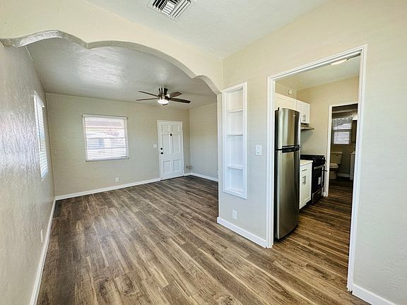 Enjoy your new home at The Santa Rita Village! You will be the first to live in this newly renovated 1 bedroom that offers vinyl flooring throughout. Private back outdoor area off the hallway. This one is located on the corner and offers a very spacious private backyard! Cook your desired meal of choice in your new modern renovated kitchen. Top of the line stainless steel appliances and gas stove! Plenty of cabinets and storage throughout! Window in the kitchen to offer natural light. Dining area located next to kitchen. Host friends and family in your spacious living room! Modern fixtures and lights, brand new piping, individual carport parking next to your home, storage outside with a washer/dryer coming soon! The newly renovated bathroom is off your hallway that offers easy access for guests. Modern tile wall shower. Plenty of storage throughout! Within walking distance to U of A. Close to bus lines as well as Downtown Tucson! Extra $50 monthly (water, sewer, trash) Pets welcome with an additional $35 monthly pet rent and $300 non refundable pet fee. Equal Housing Opportunity. Fort Lowell Realty & Property Management. This property allows self guided viewing without an appointment. Contact for details.