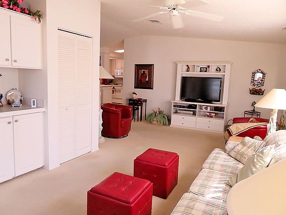 BY APPOINTMENT ONLY. This FURNISHED home is waiting just for you and is priced to sell. Bright and roomy with an open floor plan and split bedrooms. Features include: a nice size kitchen with large pantry, dining room, sun filled living room and screened in lanai which overlooks the FENCED side yard. Also includes: carport, golf cart garage, updated windows, 2012 ROOF and did I mention what a CLEAN home this is? Situated in a gated, 55+ active adult community on 350 acres. Wood & glass shop, pickleball, salt-water pool - amenities galore! Don't wait, this home will sell fast.