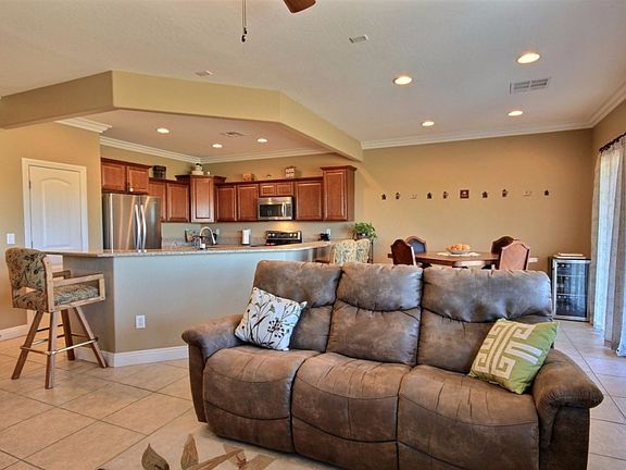 This exceptional 1,591 square foot home is located in Tannery Cove in Beautiful Sun City Mesquite, a 55+ community. Enjoy the breathtaking natural beauty from the large picture windows.The floor plan is open concept and beautifully appointed with crown molding, upgraded baseboard and tile throughout the living areas.The spacious kitchen has granite counters, rich cabinetry and stainless appliances. There are cabinets in the laundry room and racks in the garage for plentiful storage. The garage has been extended by 4'. Residents in Sun City enjoy a 30,000 sq. ft. recreation center with indoor and outside pools, gym, club rooms, tennis, bocce ball and pickle ball courts and so much more. You also receive homeowner rates at Conestoga Golf Club and discounts at 1880 Grille. So many amenities for a lifetime of enjoyment.