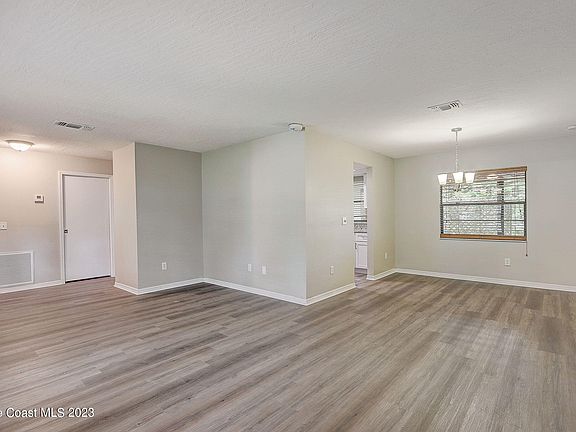 Stunning Palm Bay home nestled on a tranquil cul-de-sac lot. This property offers an inviting open floor plan that seamlessly integrates with the natural beauty of the surrounding trees. This home has been thoughtfully updated and is fully insurable, ensuring peace of mind for its future owners. The exterior has been refreshed with new paint, enhancing its curb appeal. The landscape has undergone a thorough cleanup, complementing the property's natural charm. Inside, you'll find a modern and comfortable living space. New paint and flooring throughout the house create a fresh and inviting atmosphere. Ceiling fans have been installed for added comfort. The kitchen has been transformed with new cabinets, elegant granite countertops, and stainless steel appliances, making it a chef's dream.