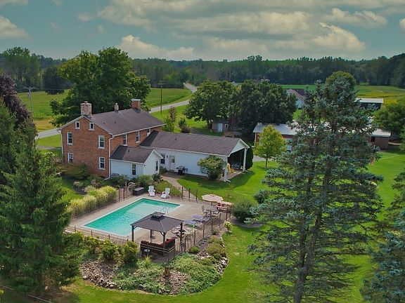 Purchase a little piece of paradise in Palmyra, NY. Circa 1830 Brick center entrance colonial. 2900+ sq.ft. on 11.89 acres. Home has been beautifully restored and offers 4 bedrooms, 2 full baths. 2020 new kitchen, stainless steel appliances and granite countertops with a large 7 foot island. Formal dining room with pass through cupboard to the kitchen. Large family room, and formal living room or 1st floor bedroom. Work from home? Home office ready to enjoy. Enjoy the pool area all summer long! Spacious patio with covered sitting area. Property offers multiple outbuildings for toys, and horses. Horse barn has 5 stalls, water and electric, Large hay barn offers additional storage, Fenced pastures with electric fencing system. (one fence line needs to be installed at the south pasture) Minutes to Downtown Palmyra, schools, community center, Erie canal walking trails, LDS sights, and Thruway. Delayed negotiations until 3/6/23 at 2:00 pm. Cindy Surline (seller) is a licensed Associate Broker, Realtor with Howard Hanna.
