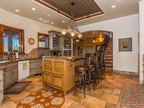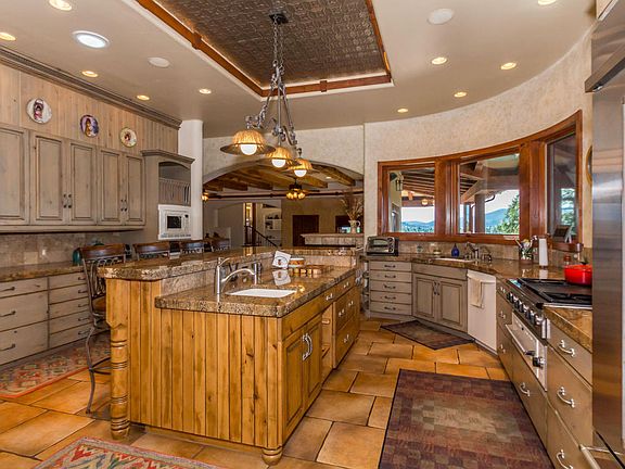 Custom Home with fabulous views.This one of a kind 4300 sq ft Mediterranean style is on 1.35 acres in a quiet cul-de-sac. Spacious 3 bedrooms, 4 bath, with handcrafted woodwork and design including 4 curved walls 2 with built-in seating and other built-in furniture thru-out. Flagstone, tile and hardwood with in-floor heat and travertine baseboards. Highly upgraded doors and windows. A true gourmet kitchen with antique stamped recessed tin ceiling located over granite island with extra sink, upgraded appliances. Lots of room for entertaining indoors and out, with covered patios. Awesome 1750 sq ft detached heated garage with 3/4 bath and workshop. All overlooking downtown Prescott in the boulders and pines. No HOA!!! Plenty of on site parking for an RV or Boat or....