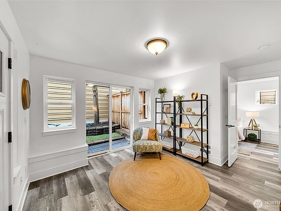 Charming townhome near desirable Green Lake! Sunlit, 3 bedroom, 2.5 bath unit with fully fenced yard, plus garage! Entry level with new LVP flooring offers an inviting family room with garden access, plus bedroom with ensuite bath. Second story great room features a gas fireplace and rich hardwood floors throughout the living room, kitchen & half bath. Stainless appliances, including gas range, and slab granite countertop with convenient breakfast bar. Upper level offers 2 generous bedrooms with vaulted ceilings and a shared bath with double vanity and linen storage. Sparkling interior with fresh paint and new carpets. Fabulous location with easy freeway access & nearby amenities. Pre-inspected, turn-key condition and no HOA! Welcome home!