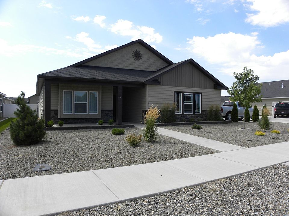1485 sq. ft. single family home with 3 bedrooms and 2 bathrooms and oversized 2 car garage. Includes fridge, range, microwave, dishwasher. Split bedroom floor plan with master off the living room area and bedrooms 2 and 3 off of the entry hall. Dual vanity master bathroom with large walk in closet. Open concept living, dining, and kitchen area with large pantry and plenty of cabinets. Two storage closets and one coat closet. Large patio, fully landscaped front and back fenced yard. RV parking. Across the street from the charter school and soccer field complex it is a very desirable area. Very bright new and spacious home, a Must See! Tenants are responsible for all utilities except irrigation water for the property. Yard will be maintained by the landlord. Landlord is responsible for all normal repairs unless it is due to tenant negligence. Renters insurance policy is required by tenants to cover their personal belongings on and in the property. No smoking inside the home.