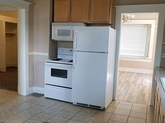 This house features three bedrooms, one bathroom, living room with a bay window to sit and enjoy a book. The kitchen has tile with a center piece design. Laundry upstairs with gas dryer. This house has character throughout with nine foot ceilings. Big back yard that goes all the way to the alley with sprinkler system.