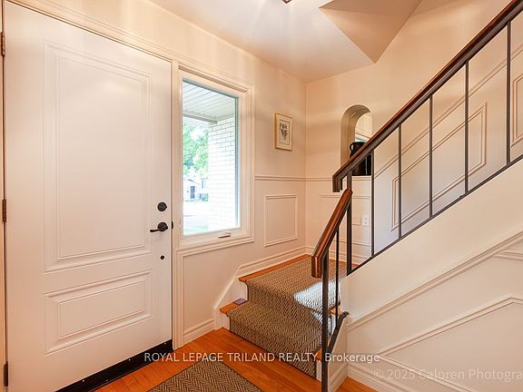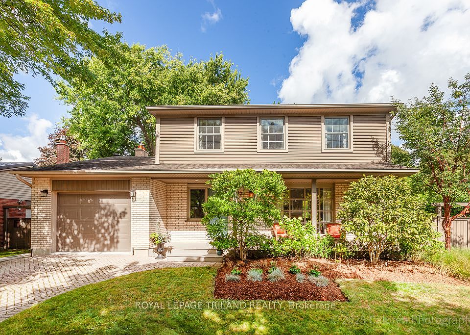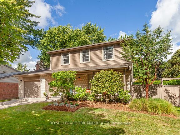 A stunning two-storey family residence nestled in the heart of Oak Park, one of Londons most sought-after, tree-lined neighbourhoods, awaits its next chapter. This captivating property is enveloped by mature trees and meticulously manicured gardens, creating a serene escape within the city. Offering a spacious four-bedroom plan with two updated bathrooms and a blend of classic and modern comforts, this home is designed for the growing family. Step inside to discover gleaming hardwood floors, where a cozy living room with a gas fireplace insert invites relaxation. The eat-in kitchen is a welcoming hub for family cooking and memory-making, while the adjacent den boasts a wood-burning fireplace, adding warmth and character. Enjoy direct access to the beautifully landscaped, fully fenced backyard and expansive deck perfect for barbecues or quiet mornings amid the lush, mature landscaping and accent lighting. A partially finished basement caters to all your lifestyle needs, offering a recreation room, games area, laundry facilities, and ample storage. The attached single-car garage adds convenience and security.This residence has been lovingly cared for, with pride of ownership evident throughout. Recent upgrades include a new furnace and central air conditioning (2024), owned hot water heater (2024), enhanced exterior insulation, and new siding.Enjoy proximity to amenities such as Oakridge Optimist Park, London Hunt Golf & Country Club, Clara Brenton Woods Park, Remark Fresh Market, Real Canadian Superstore, and Hyde Park Shopping. Families will appreciate the short walk to schools like Clara Brenton Public School, St. Pauls Catholic Elementary, and Oakridge Secondary School. With abundant green space, exceptional convenience, and a vibrant sense of community, this Oakridge treasure offers the perfect blend of suburban tranquility and urban connectivity. Schedule your private viewing today and experience why Oakridge remains London's premier choice for family living.