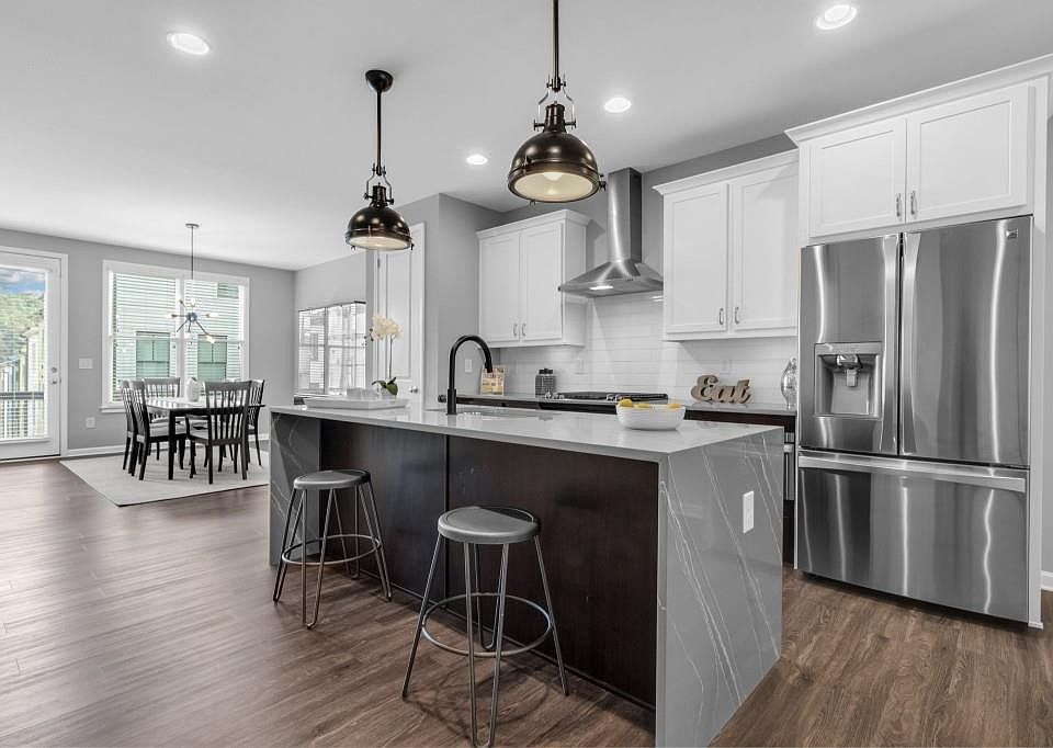 • Features: Breakfast Bar, Cabinets White, Kitchen Island, Pantry, Stone Counters, View to Family Room