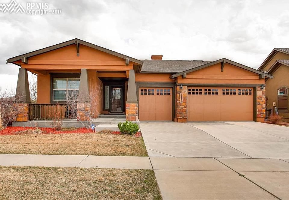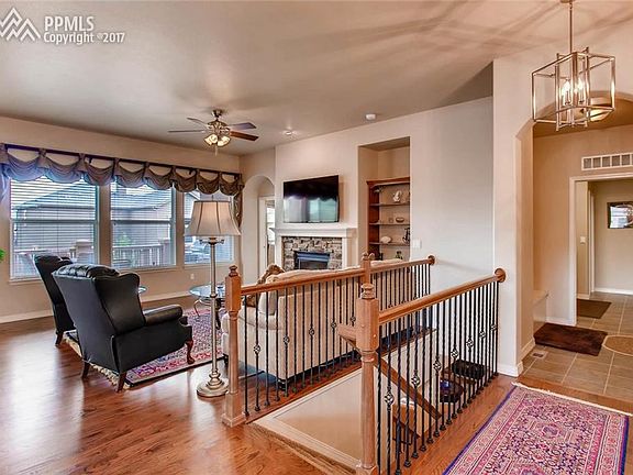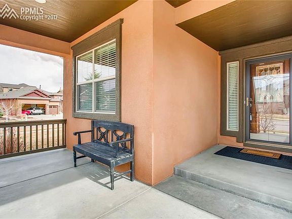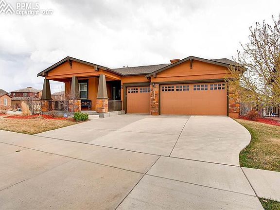 This bright, open ranch home in Flying Horse is almost brand new and in the desirable Academy School District 20! Along w/mountain views, it has a main floor master bedroom w/luxury 5-piece bath, formal living room & dinning room. Stunning gourmet kitchen w/double ovens, large granite island, butlers pantry, stainless steel appliances and walk out access to the covered deck. Large family room w/ fireplace downstairs w/wet bar, 2 bedrooms and tons of additional storage. Easy access to I-25, shopping and restaurants. Additional upgrades: A/C, humidifier, utility sink in laundry room, custom window treatments throughout, under cabinet lighting, large corner lot, security system, large safe in basement.