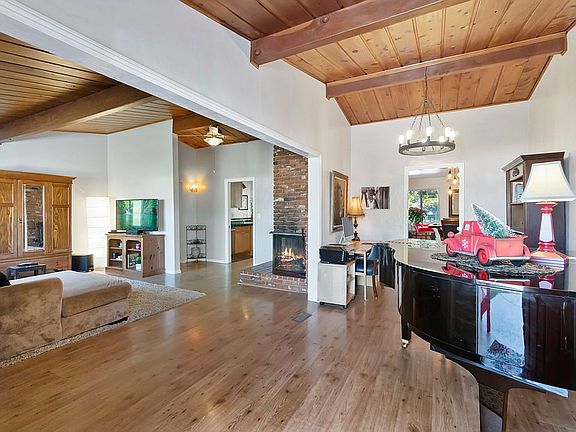 Welcome to your garden oasis home! If you love the country feel, this could be the gem for you. This lovely home is situated in an old neighborhood on nearly a half an acre. The lot has ample privacy with greenery everywhere. The property has so much to offer. The sparkling pool and spa is the centerpiece that begs for a cool off or a hot tub decompressing depending on the weather and your mood! A covered back patio is a lovely space to have a game of ping-pong or an outdoor barbecue! In the back of the property, there are citrus trees that produce delicious fruit. Endless supplies of lemons, mandarins, navel oranges and grapefruit! A newly placed fence is all ready to have grow boxes placed for a brand new garden. A second driveway gives you the option to park RV or boat. A covered carport fits two cars preserving from the elements. The attached 1 car garage has overhead storage in addition to workbench and cupboards to get fully organized. Inside, you will find charm and warmth. The vaulted wooden ceilings in most of the house add a stately feel and when coupled with a cozy fire, you will be transported to a secret mountain cabin getaway! The kitchen has all stainless steel appliances with ample amounts of space in the wooden cabinetry. A half bath works great for guests and is situated across from the laundry room. This home is waiting for the right family to come in and enjoy all that it has to offer! Washer, dryer and refrigerator all convey. No Mello Roos and no HOA's! The house is on city sewer so no hassles with septic. Last but definitely not least, there is enough room to place an ADU (accessory dwelling unit) in the back of the property to add extra income for yourself or just to have your loved ones live with you on the same property! Enjoy the virtual tour!