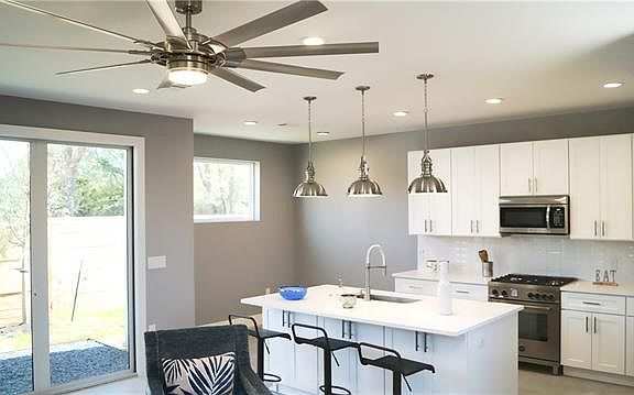 3 story modern home with no expense spared, by MJC homes. Masterful design and modern luxury are uniquely embodied in this spacious 5 Bedroom 3 ½ Bathroom home.Located within minutes to downtown Austin. Every detail was carefully selected and quality crafted. High-end amenities and Bosch appliances. Sliding glass doors in the dining area showcase views. Dramatic stairways lead to the private bedroom suites, all floors boasting sleek en-suite showers, generous closets and wonderful views.