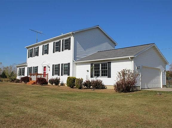Exceptional 10 acres setting and lovely 4 BR/2.5 BA home! Peaceful, private & very picturesque. Step inside to an incredibly spacious family room w/ French doors, beautiful hardwood floors. Formal living room, large formal dining room & main floor den or home office. Large eat-in kitchen w/ pantry, stainless steel appliances, breakfast bar and sliders to the deck and fenced yard. Boasts over 3,400 finished square feet of living space. Master suite w/ private full bath & jetted tub & walk-in closet and three additional bedrooms. New Stainmaster carpet & pad w/ transferrable warranty. A very impressive finished lower level walk-out! A great space for entertaining-lots of room here & tall ceilings. Large laundry room with washer & dryer included-plumbed for additional bath. 2.5 attached garage, fenced area behind home & 10 gorgeous acres. Whole house generator included. Wood burner heats hot water & furnace, furnace is 2 years old. 24x30 pole barn,2 overhead doors,concrete floor.