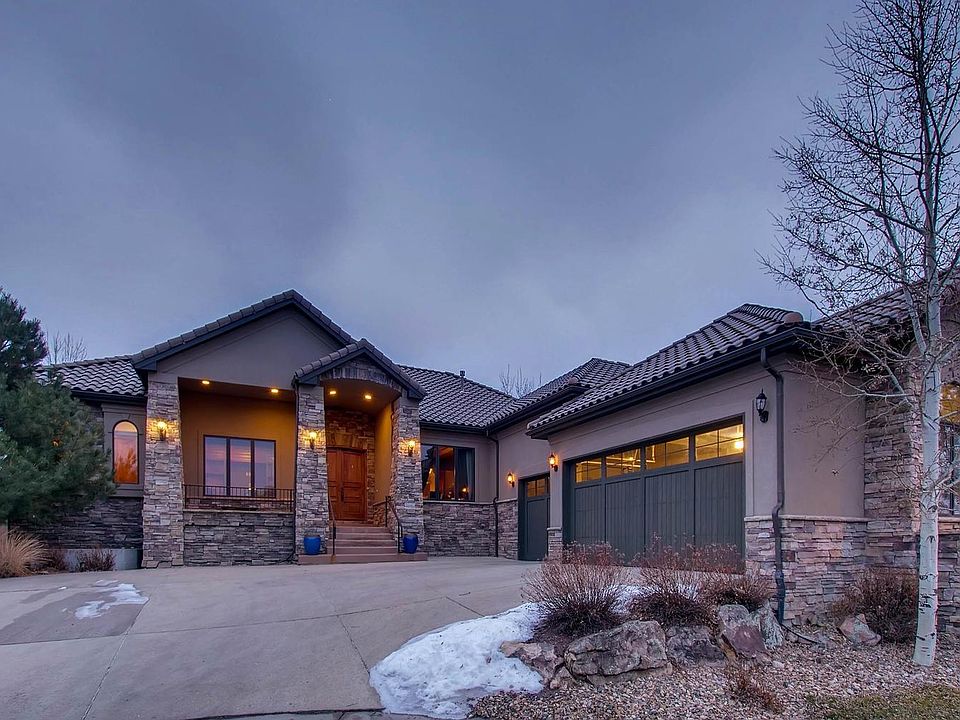 Golf Course & Country Club Living Stunning custom home backing to the 15th hole tee box of the prestigious Ranch Country Club Golf Course. This coveted Ranch Reserve property is perfect for entertaining with an open floor plan, vaulted ceilings, fully finished basement, pub style bar and a large back patio with an outdoor gas fire pit opening to the course. The gourmet kitchen includes a professional stainless steel six-burner dual-fuel gas range, custom built-in cabinets, sub-zero refrigerator, pot filler, granite countertops and large island. The main floor Master Suite has private access to the back patio, a large walk-in closet and features a five-piece bath with jetted tub and large shower with dual shower heads. The breathtaking course views can be enjoyed from inside the home thanks to the enormous floor to ceiling windows in the main living area. The Ranch Country Club and Restaurant were just remodeled and offer: Golf, Tennis, Pool and Social memberships.
