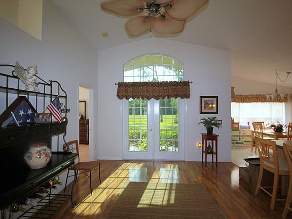 This home sits by the 16th hole at River Ridge and Country Club, true GOLF FRONTAGE! It has 3 bedrooms, 2 baths, 2 1/2 car garage(extend for your golf cart)!This well maintained home in a desirable gated community. Home features wood floors throughout living are. Custom Drapes and Curtains throughout! Master bedroom has carpet with a tile bath floor. Kitchen features crown molding on the cupboards, lots of counter space and a custom breakfast bar. With an open floor plan kitchen / Living room combo, home feels spacious! Custom track lighting throughout, cathedral ceilings. Very light and bright!Grab your cup of joe or your favorite wine while gazing at the deer and cranes dancing through the common area alongside the 16th hole !!! It doesn''t get much better! This community has a Recreational Clubhouse with restaurant, bar with TV''s galore! The clubhouse just had a $500,000 renovation, it''s a public golf course, Olympic size pool, exercise room, meeting/party rooms etc. many scheduled activities. Social membership included with this grandfathered neighborhood, talk about value!!!