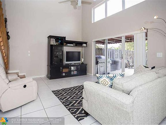 Come see this wonderful 2 story Rock Creek Trellises home in Cooper City with pool set on an private oversized corner lot. Features include 16x16 tile on ground floor, large 2 car garage, beautiful new patio awning, laminate flooring on stairs and 2nd floor, newer a/c, and a brand new Spanish S-tile roof. The master bathroom features his and her sinks and a roman style bathtub. The kitchen has stainless steel appliances with a microwave and electric stove and oven.