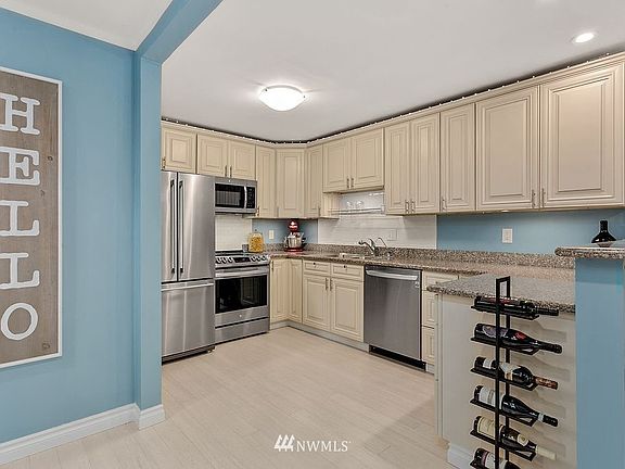 You will fall in love with this beautiful, completely remodeled, end unit condo. The owners have lovingly remodeled this home with a chef's kitchen including high end appliances, granite counter tops, water filtration system, new cabinetry, and beautiful bamboo flooring. Over $70k of upgrades and remodeling AND one of the largest units in the complex! Enjoy the peace and quiet of this home with new fiberglass insulated windows(triple pane Milgard!), newer carpet, and located on a peaceful cul-de-sac and yet close to everything. This is a delightful community with a tennis court and swimming pool. Extra storage in the garage and parking for three vehicles. Relax on your private patio in the backyard with room for a garden.