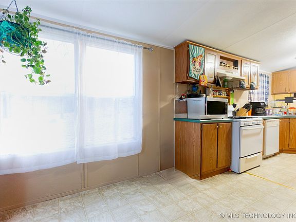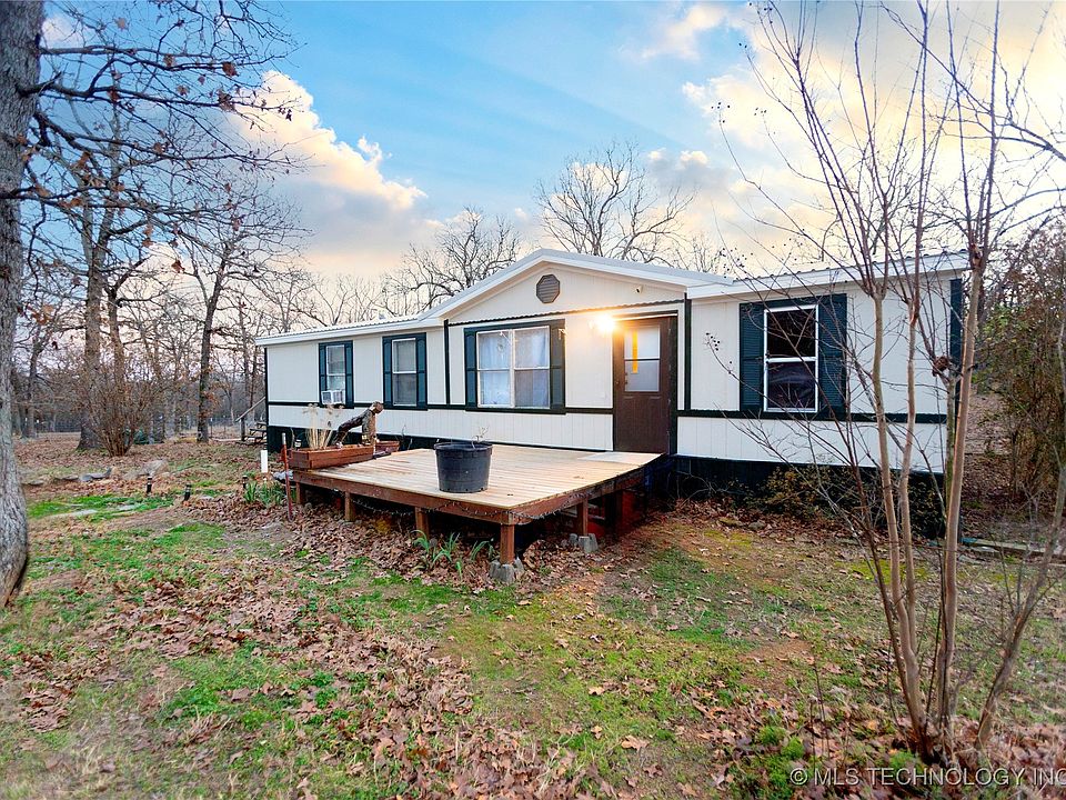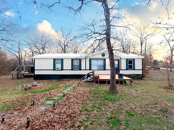 Tucked away at the end of a quiet cul-de-sac, this peaceful 8-acre oasis offers privacy, space, and meaningful updates—just minutes from Lake Eufaula while still conveniently close to town. The double wide features an open living area with abundant cabinet space, fresh paint throughout, and new flooring in the primary bedroom and both bathrooms. The subfloor in the primary bathroom has been replaced, a brand-new metal roof adds long-term value, and the water tank is only two years old. Both the front and back decks were added within the last five years, providing ideal spaces to enjoy the peaceful setting. The land has been partially cleared by the owner, blending usability with natural beauty. A seasonal creek runs through the property, complemented by large natural rocks ideal for organic landscaping. Wildlife is abundant, with regular sightings of deer and hogs, creating a true country retreat. Additional features include a chicken coop, storage shed, and an existing well that is not currently in use but may be restored. The double wide is tied down and set on piers, offering added stability and peace of mind. The home may need minor cosmetic updates, but overall has been well cared for and improved over time. Conventional or cash buyers only. Ideally located approximately 12 minutes to Eufaula and 8 minutes to Checotah, this property offers the perfect balance of privacy, convenience, and rural living.