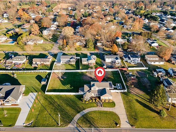 Check out this custom built 5 bedroom, 4.5 bath colonial located on 1.21 acres in Lake Twp. Located in the top rated Lake Local School District, this one has a quiet country setting yet close to schools, Hartville Kitchen, Hardware & Flea Markets. You will notice some unique features/upgrades as soon as you enter the drive, like the oversized circular concrete driveway, covered front porch, leading to a gazebo and new siding in 2019. Back yard is amazing and is entirely fenced in w/a new 6 ft. vinyl fence in 2019. Backyard also has a hot tub, massive composite deck w/bar area, plus patio w/cooking area all new in 2020. First floor master bedroom has doors leading to office area and a full master bathroom and walk-in closet. First floor also offers a large living room w/fireplace, kitchen w/wood floors, dining area and first floor laundry. Upstairs offers another possible master bedroom, complete with a new bathroom in 2023 w/double sinks and a walk-in closet. Down the hall offers two more large bedrooms, plus another full bath all new in 2023. Basement is finished w/another full kitchen, 5th bedroom, laundry room w/washer/dryer included, full bath and rec room. Basement is a walk out leading to covered patio w/stamped concrete new in 2020. Other updates include epoxy flooring in garage 19',HWT 19', insulation 20', slider 20', furnace 21', generator 21', softener 22' and more. This one has too many amenities/upgrades to list all and will make a great house to call home!